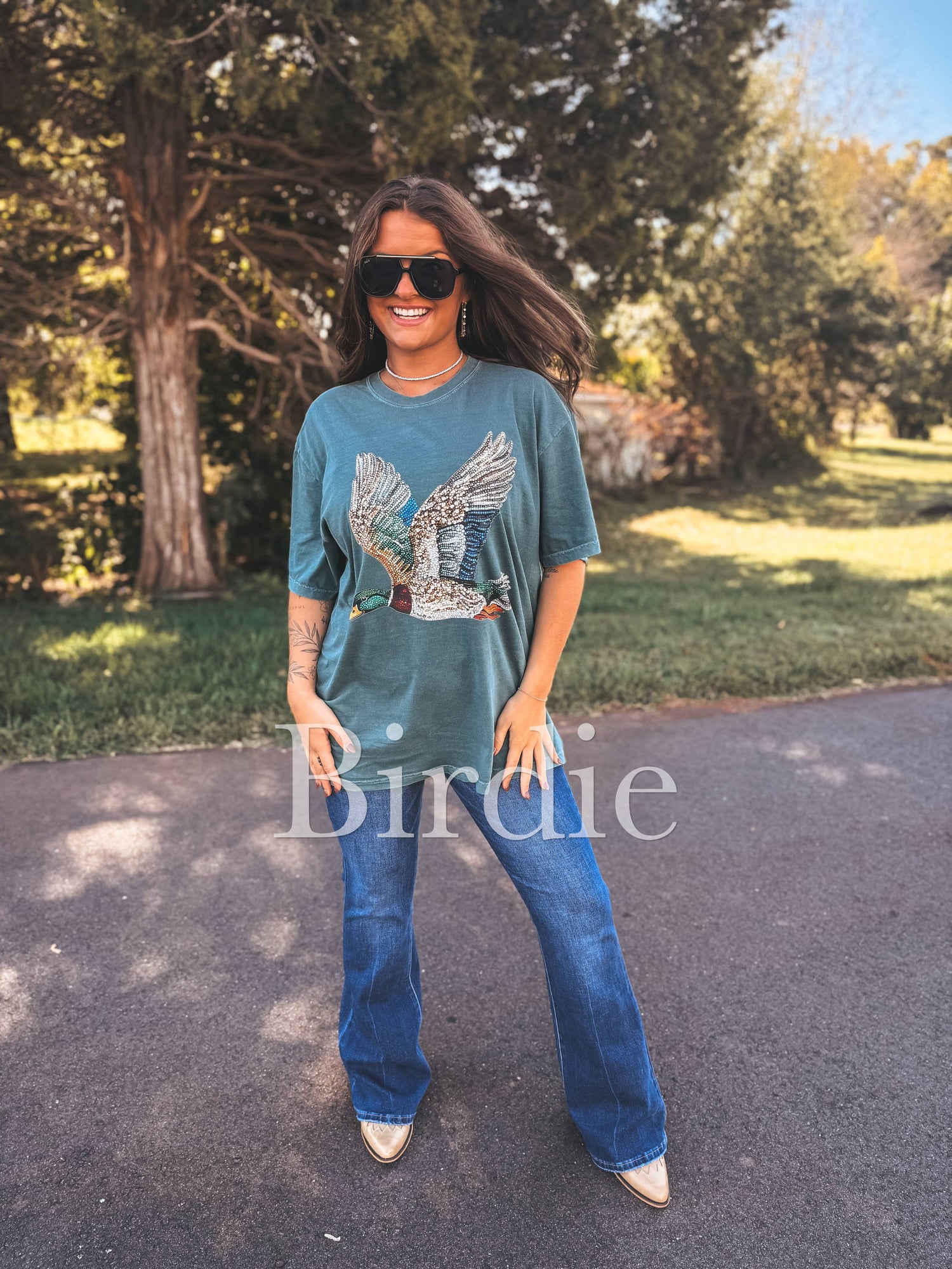 Faux Rhinestone Duck Graphic Tee on Blue Spruce